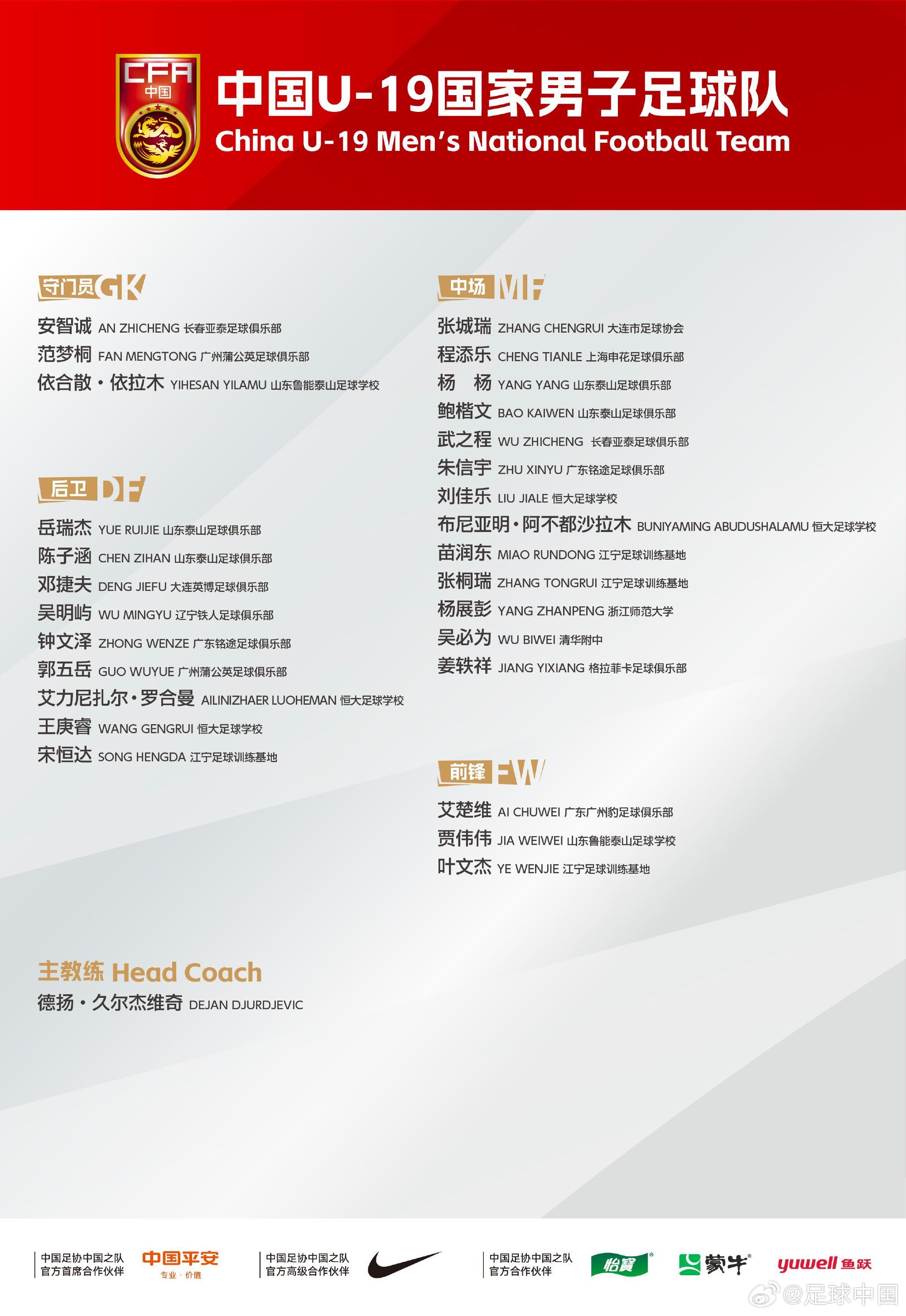 U19国足集训名单