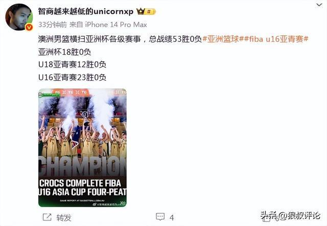 随着澳大利亚U16男篮以全胜的战绩夺得U16亚洲杯冠军,这让澳大利亚男篮在亚洲统治力地位覆盖到全年龄段。